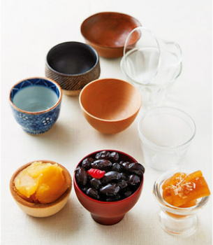 重箱や和風の食器でなくても、工夫しだいでおせちをおしゃれに盛ることができます。また、ふだんの食器を水引や紅白の和紙で飾るだけで、お正月らしいテーブルセッティングに。