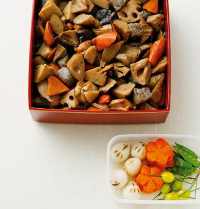 重箱の煮物を補充するときには、あたため直して入れます。飾り食材はあたためなくてもよいので、煮物とは別々に保存しておきましょう。