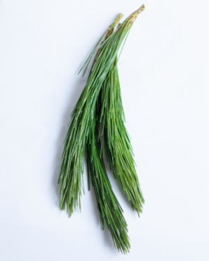 常緑樹で樹齢も長いことから、長寿のシンボルとして緑起のよいあしらいとされています。このまま飾ったり、ぎんなんや黒豆に刺してあしらいにしたりも。